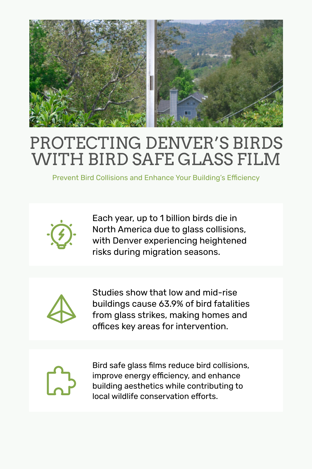 Ready to protect the birds and enhance your property? Contact Denver Commercial Window Tinting today at (720) 287-6939 or email us at contact@denvercommercialwindowtinting.com. Visit our website for more information or to schedule a consultation. Together, we can make Denver a safer place for our feathered friends.